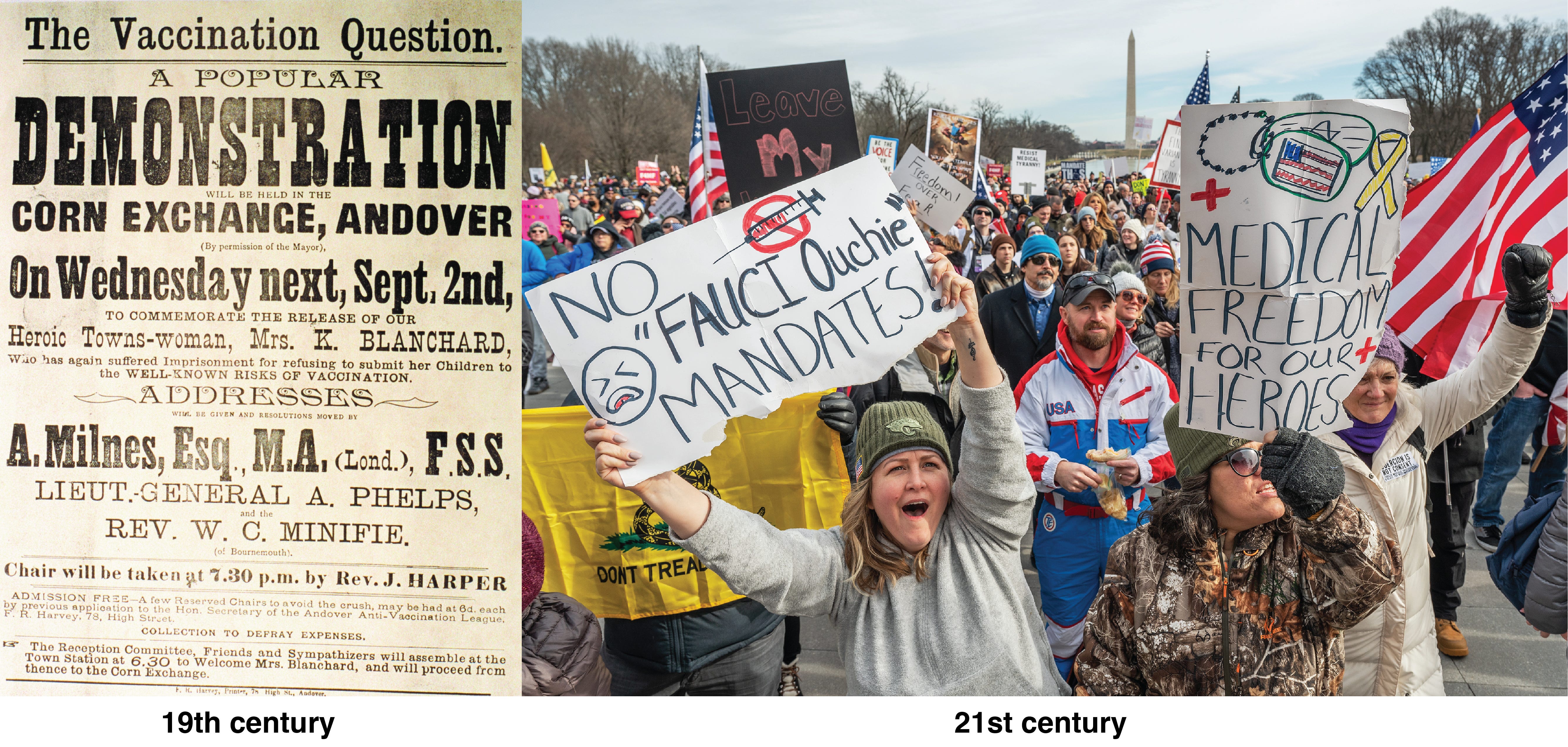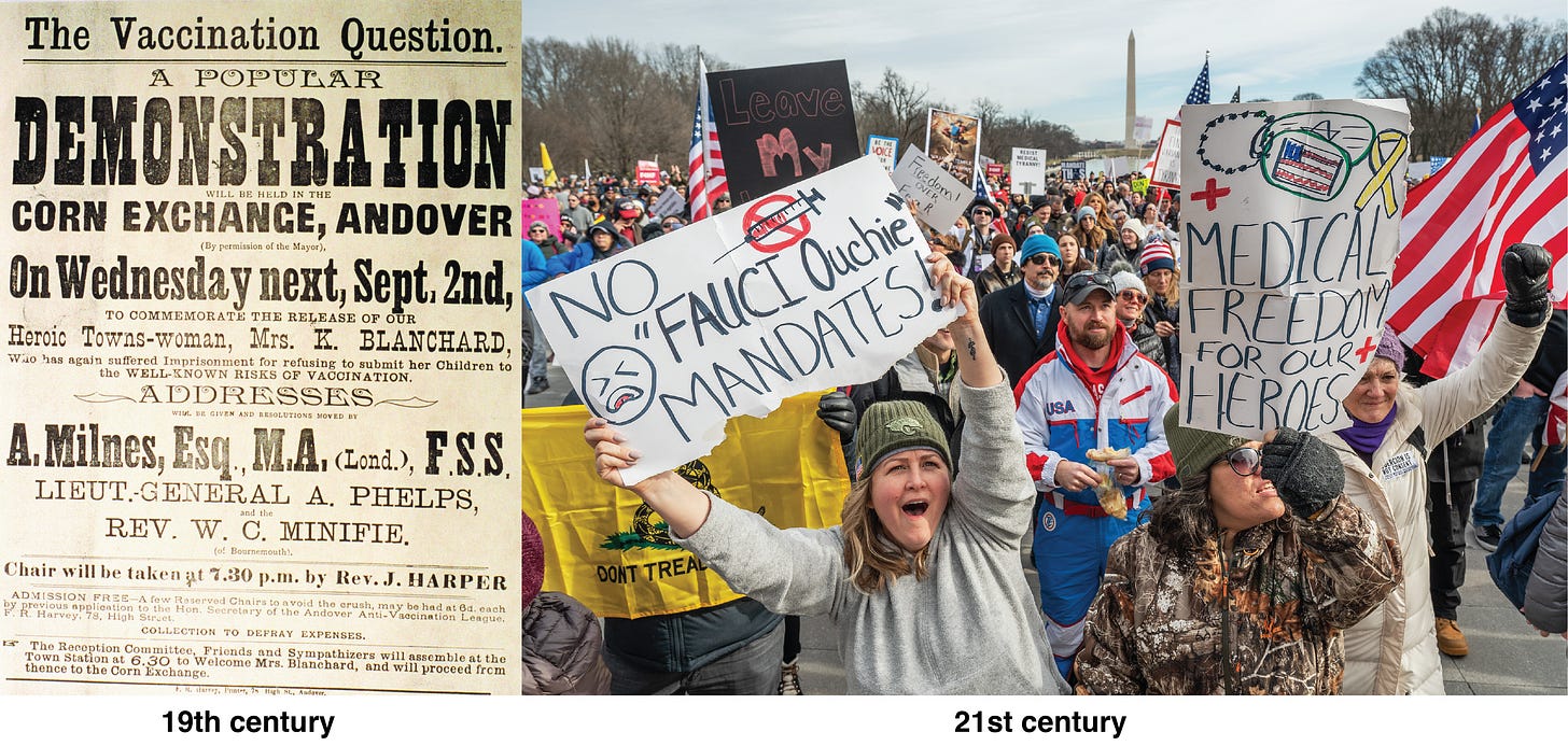 The anti-vax movement of the past and the present have used the same tactics and talking points for the past two centuries, even as technology has changed for getting the message across. Almost all anti-vaccine disinformation relies on the same fundamentally incorrect premise: whether through ignorance or intention, they do not acknowledge or accept that vaccines work by preventing or reducing disease.