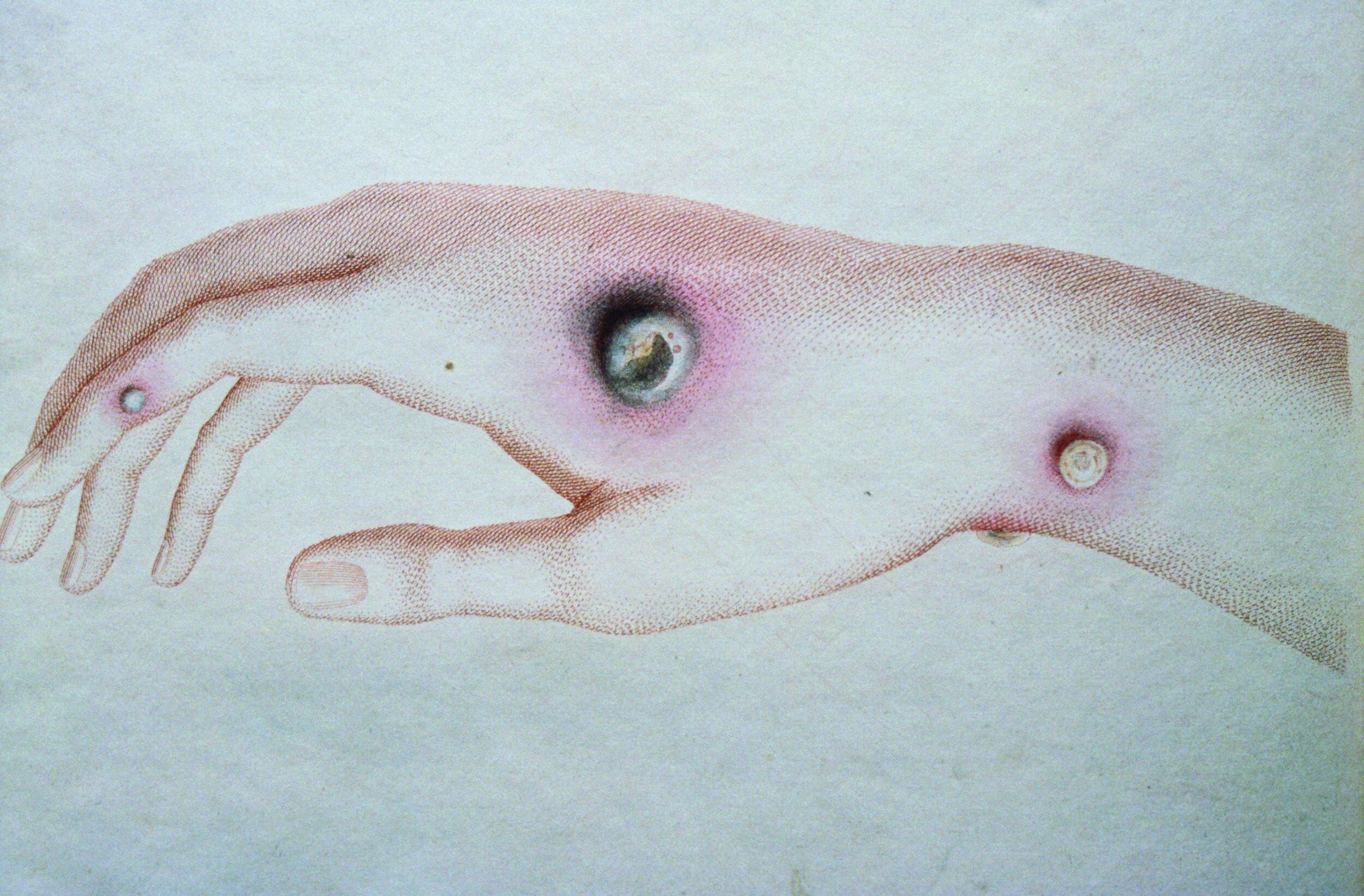 Variolation is like vaccination, except using actual VARV instead of VACV. Variolation was first described in the 10th century in China and had been adopted in various parts of the world ever since. There were several techniques for variolation but most of them involved scratching “variolous material” into the skin or insufflation (snorting it). The variolous material was just scabs and dried pus from someone else’s smallpox lesions, so there was a lot of variability in the results of exposure to it. From one batch to the next, there would be huge differences in the amount of infectious virus, the method of inoculation, and the skill of the inoculator. If done right, variolation resulted in transient, mild smallpox with just a couple of blisters at the site of inoculation that produced protective immunity. If done wrong, variolation would either not result in infection and thus no immunity or it would cause full-blown smallpox. Variolation had huge benefits but also tremendous risks. Still, the prospect of dying in a smallpox epidemic was worse to many, so many people took the risk anyway.