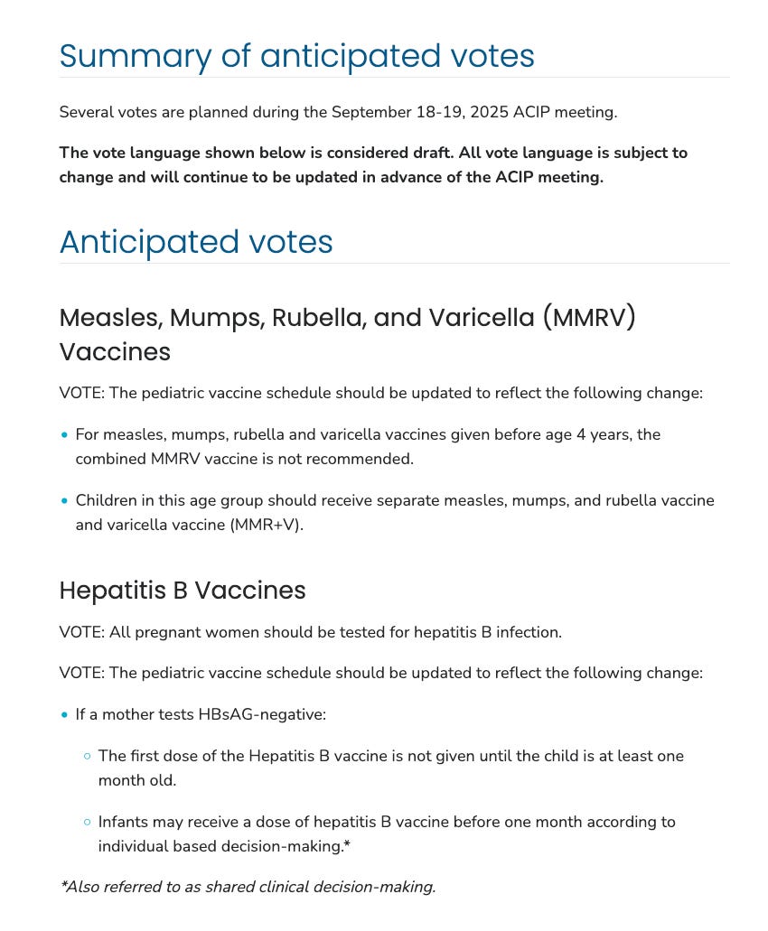 The anticipated votes were posted this morning, and it was as I expected: they are likely going to strike the measles-mumps-rubella-varicella (MMRV) and hepatitis B virus (HBV) vaccines.