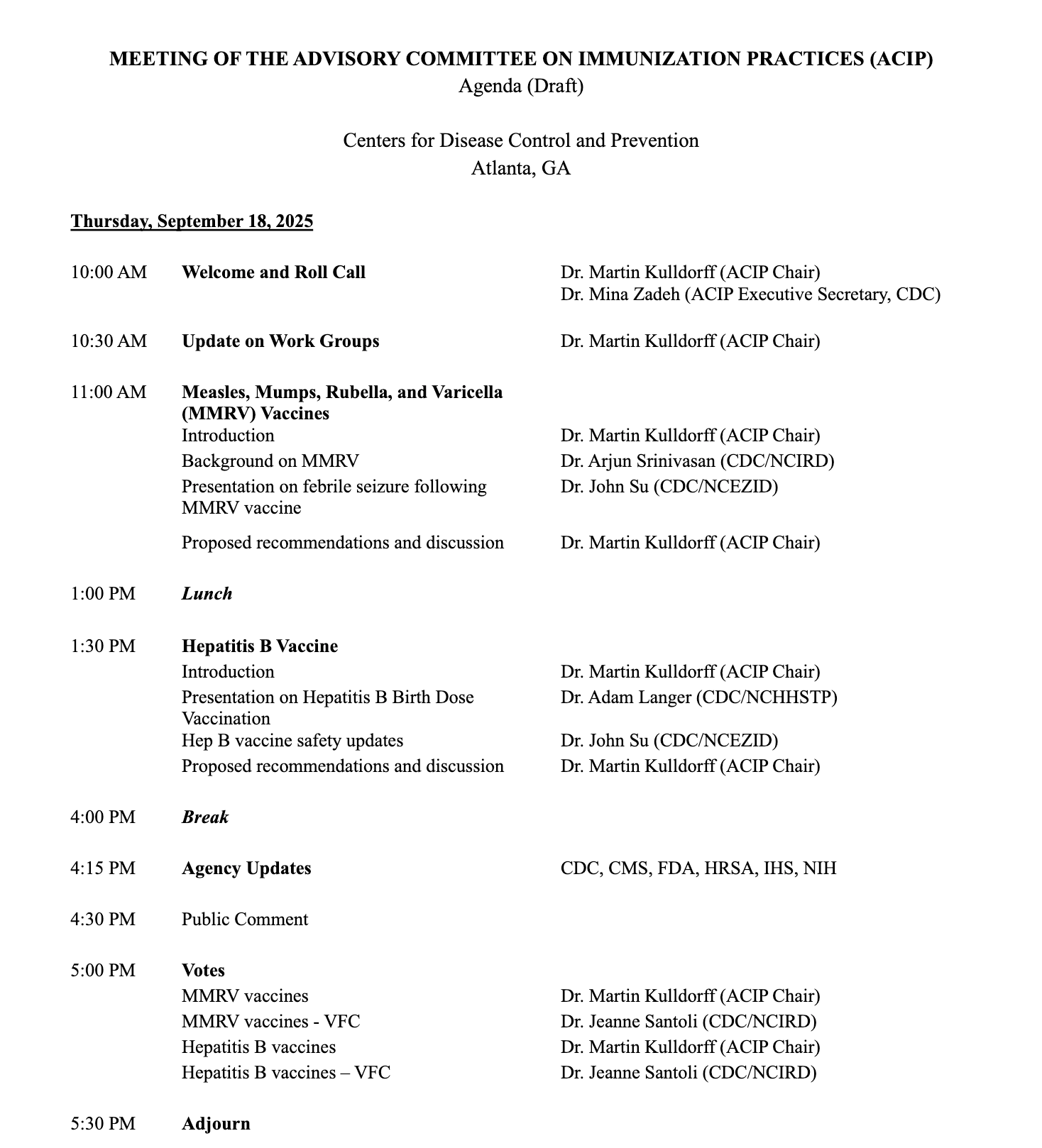 It’s a big day for the bloodthirsty psychopaths of the MAHA movement, as there’s a meeting of the Advisory Committee on Immunization Practices (ACIP) meeting getting started as I write this. At the last ACIP meeting in June, US Health and Human Services Secretary Robert F. Kennedy Jr’s octet of hand-selected anti-vaxxers brought their preventable disease-loving lack of expertise to America’s vaccine recommendations and pulled multi-dose flu vaccines off of pharmacy shelves by voting on “evidence” long-discredited ancient anti-vax lore that the preservative thimerosal is unsafe for children. Never mind that thimerosal has been used for decades with no evidence of harm or that most vaccines are single-dose formulations with no thimerosal or that kids rarely get multi-dose flu vaccines. The preventable disease enthusiasts at ACIP voted thimerosal off the vaccine market and they were just getting warmed up. Now the sickness squad has five new anti-vaxxers and the rest of the vaccine schedule in their sights. Here’s what to expect from day 1.
