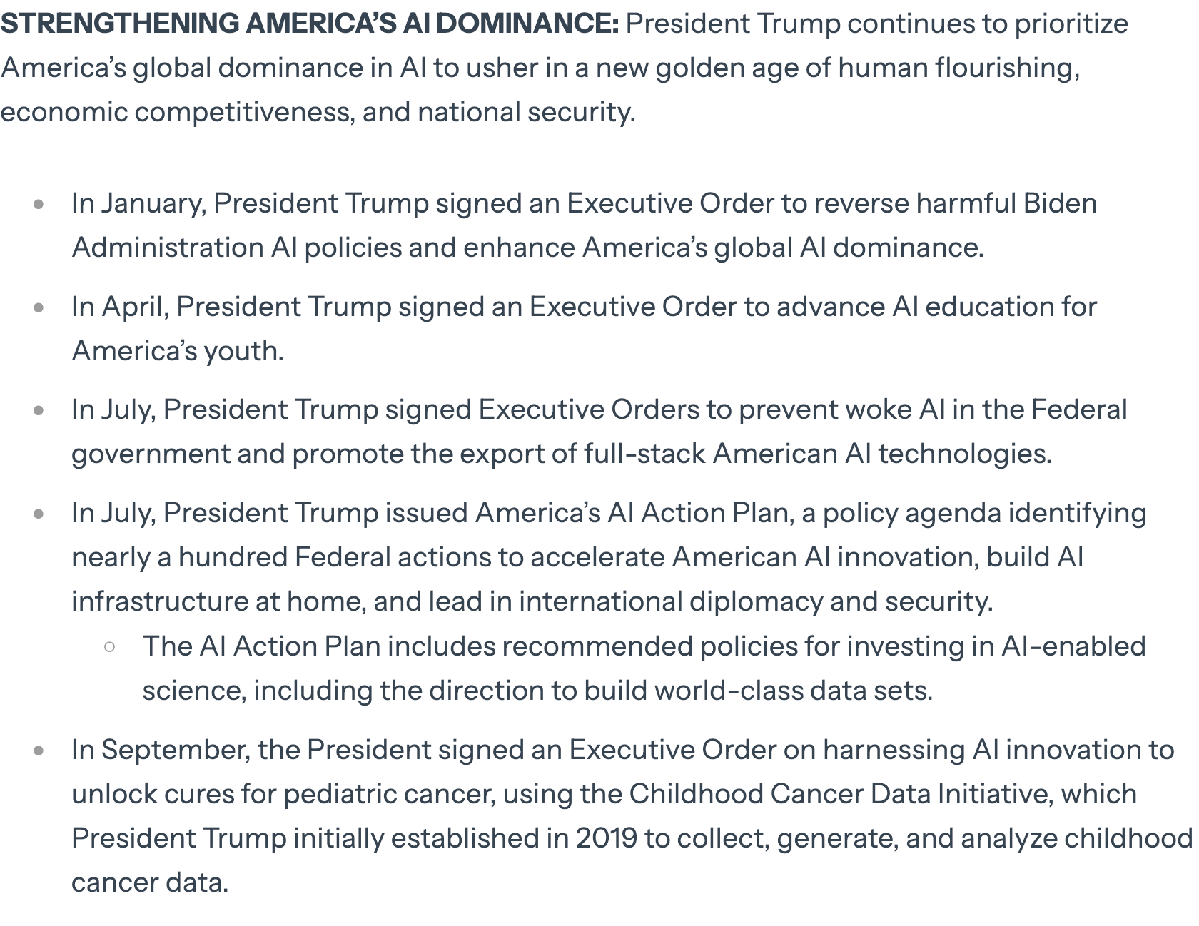 That sounds pretty good, right? Let’s do more science, better and faster! Priority areas include biotechnology, critical materials, nuclear fission and fusion energy, space exploration, quantum information science, and semiconductors and microelectronics. Unleash the raw scientific power of American AI! Also, there’s a lot of stuff about robotics being deployed to implement whatever the Genesis Mission platform ends up being, so that sounds cool and futuristic too.